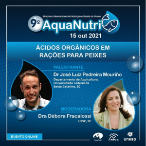 9° AquaNutri – Participação como moderadora na palestra “Ácidos orgânicos em rações para peixes”, ministrada pelo Dr. José Luis Pedreira Mouriño, em 15/10/2021, às 14 h.